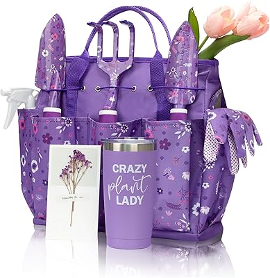 Gardening Gifts for Women, Garden Tool Set, Heavy Duty Gardening Hand Tools with Garden Tool Bag, Purple
